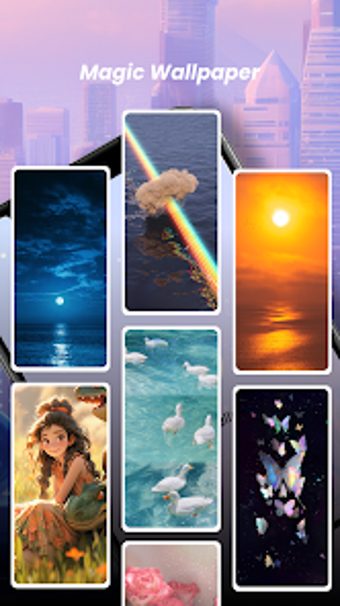 Magic Wallpaperの特徴の一つは、特定の場合や時間に壁紙を設定できることです。朝に明るく元気な壁紙を、夜には落ち着いた壁紙を表示したいですか?問題ありません!このアプリでは、好みに基づいて壁紙の変更をスケジュールすることができますので、モバイルデスクトップが常に気分に合ったものになります。